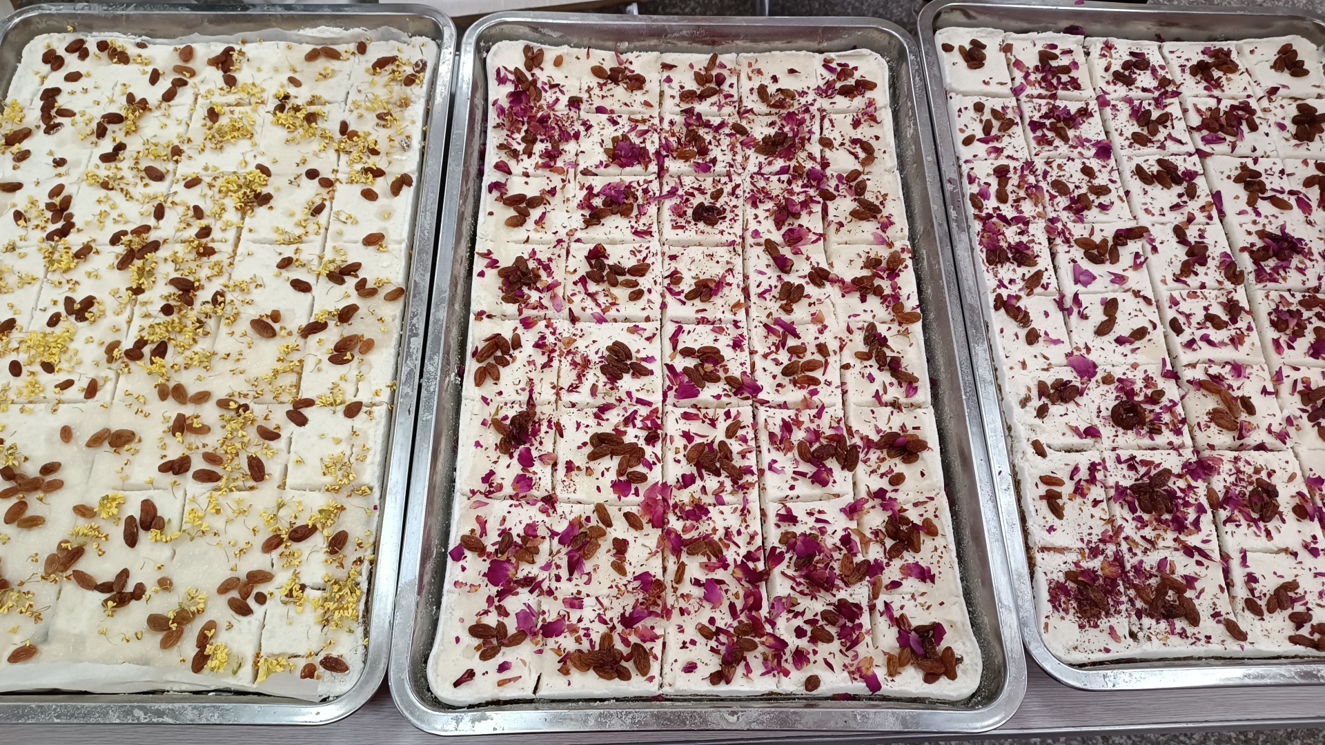 在完成五角星的剪紙后,社區(qū)人員為大家準(zhǔn)備好了重陽糕制作的工具和食材并講解揉面、壓模成型等系列流程。