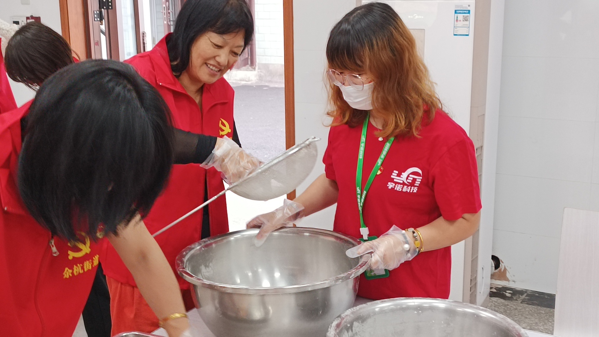 對首次接觸制作的黨員和長者們可謂是小錯不斷,但長者們和宇諾科技的黨員相互協(xié)助,做糕點的同時話話家常。