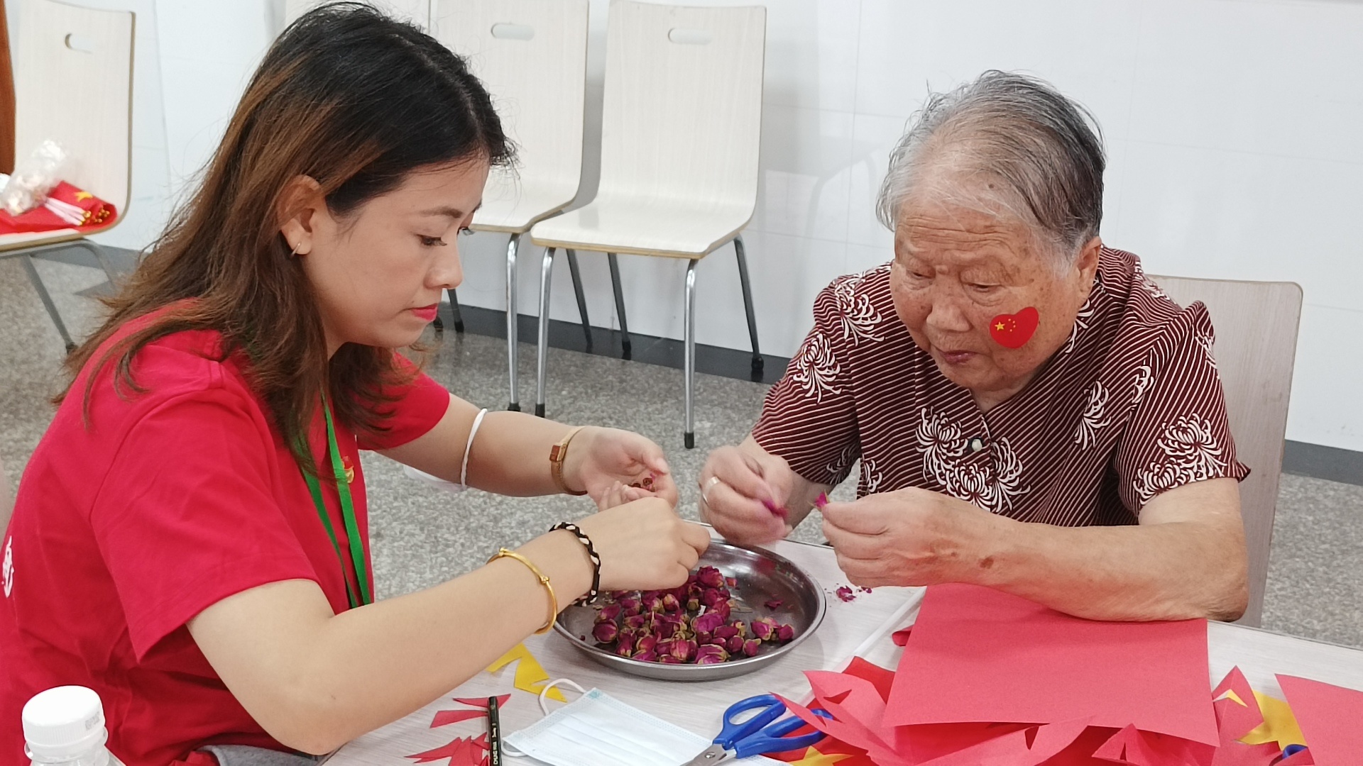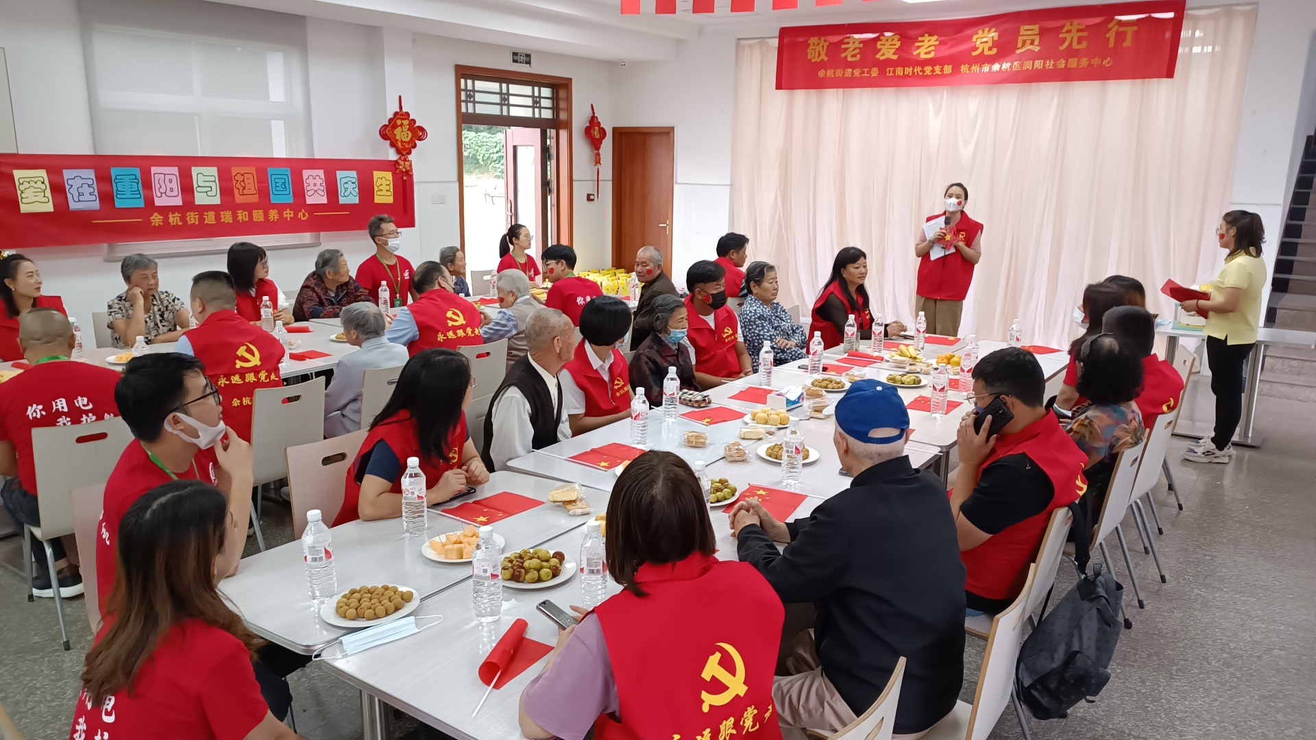 中共杭州宇諾相應(yīng)號召,組織黨員青年志愿者服務(wù)隊,走入余杭街道老街拆遷安置點--瑞和頤養(yǎng)中心,與長者一起喜迎國慶,歡度重陽!